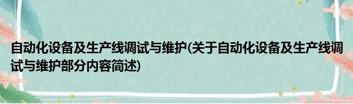 自动化设备及生产线调试与维护(关于自动化设备及生产线调试与维护部分内容简述)