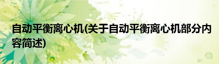 自动平衡离心机(关于自动平衡离心机部分内容简述)