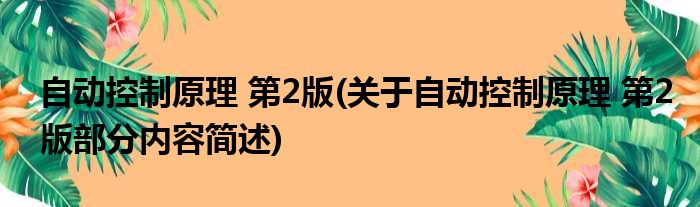 自动控制原理 第2版(关于自动控制原理 第2版部分内容简述)