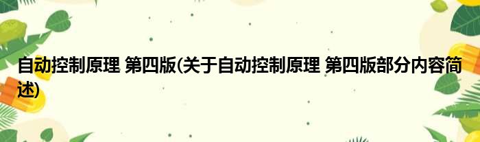 自动控制原理 第四版(关于自动控制原理 第四版部分内容简述)