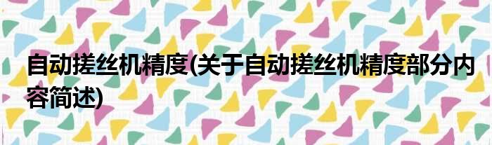 自动搓丝机精度(关于自动搓丝机精度部分内容简述)