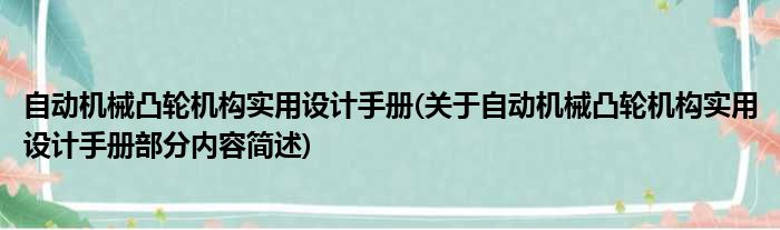 自动机械凸轮机构实用设计手册(关于自动机械凸轮机构实用设计手册部分内容简述)