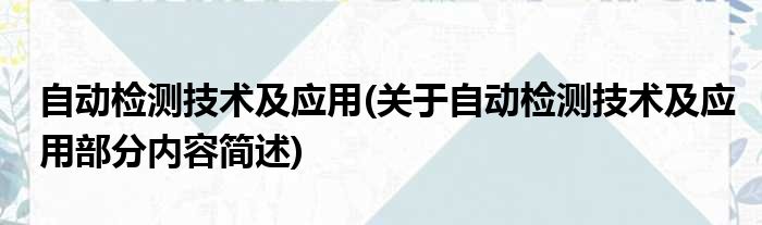自动检测技术及应用(关于自动检测技术及应用部分内容简述)