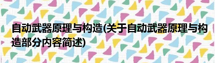 自动武器原理与构造(关于自动武器原理与构造部分内容简述)