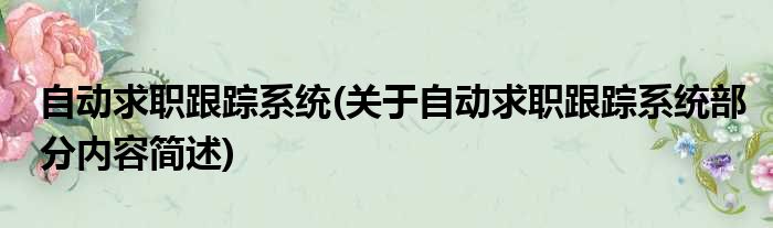 自动求职跟踪系统(关于自动求职跟踪系统部分内容简述)