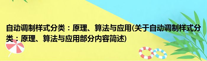 自动调制样式分类:原理、算法与应用(关于自动调制样式分类:原理、算法与应用部分内容简述)