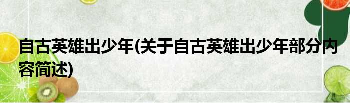 自古英雄出少年(关于自古英雄出少年部分内容简述)