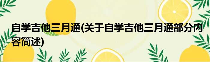 自学吉他三月通(关于自学吉他三月通部分内容简述)