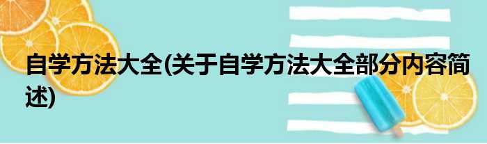 导读 大家好,今天小方来说说一篇关于自学方法大全,关于自学方法大全部分内容简述的文章,那么现在就为大家来简单介绍下,希望对各位小伙伴们有