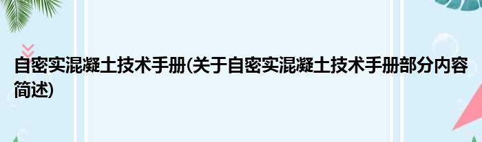 自密实混凝土技术手册(关于自密实混凝土技术手册部分内容简述)