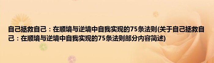 自己拯救自己:在顺境与逆境中自我实现的75条法则(关于自己拯救自己:在顺境与逆境中自我实现的75条法则部分内容简述)