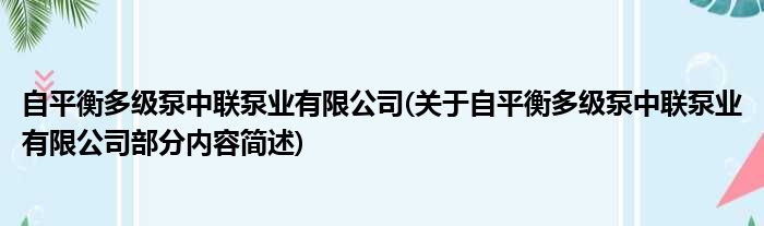 自平衡多级泵中联泵业有限公司(关于自平衡多级泵中联泵业有限公司部分内容简述)