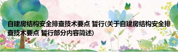 自建房结构安全排查技术要点 暂行(关于自建房结构安全排查技术要点 暂行部分内容简述)