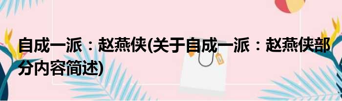 自成一派:赵燕侠(关于自成一派:赵燕侠部分内容简述)