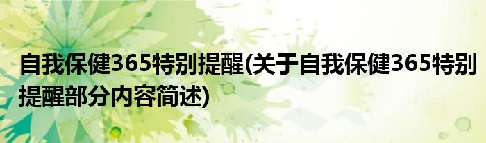 自我保健365特别提醒(关于自我保健365特别提醒部分内容简述)