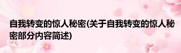 自我转变的惊人秘密(关于自我转变的惊人秘密部分内容简述)