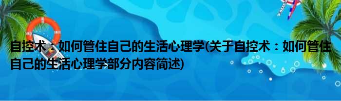 导读 大家好,今天小方来说说一篇关于自控术:如何管住自己的生活心理学,关于自控术:如何管住自己的生活心理学部分内容简述的文章,那么现在就