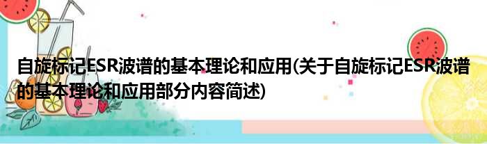 导读 大家好,今天小方来说说一篇关于自旋标记ESR波谱的基本理论和应用,关于自旋标记ESR波谱的基本理论和应用部分内容简述的文章,那么现在就为