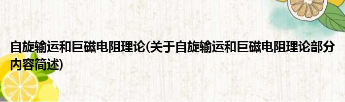 导读 大家好,今天小方来说说一篇关于自旋输运和巨磁电阻理论,关于自旋输运和巨磁电阻理论部分内容简述的文章,那么现在就为大家来简单介绍下,