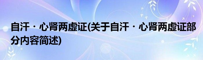 自汗・心肾两虚证(关于自汗・心肾两虚证部分内容简述)