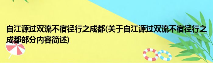 自江源过双流不宿径行之成都(关于自江源过双流不宿径行之成都部分内容简述)