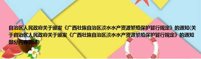 自治区人民政府关于颁发《广西壮族自治区淡水水产资源繁殖保护暂行规定》的通知(关于自治区人民政府关于颁发《广西壮族自治区淡水水产资源繁殖保护暂行规定》的通知部分内容简述)