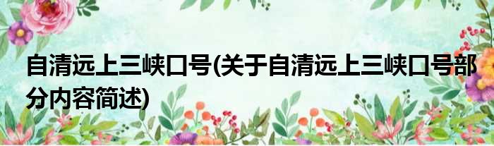 大家好,今天小方来说说一篇关于自清远上三峡口号,关于自清远上三峡口号部分内容简述的文章,那么现在就为大家来简单介绍下,希望对各位小伙伴们有所帮助。