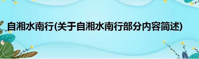 大家好,今天小方来说说一篇关于自湘水南行,关于自湘水南行部分内容简述的文章,那么现在就为大家来简单介绍下,希望对各位小伙伴们有所帮助。