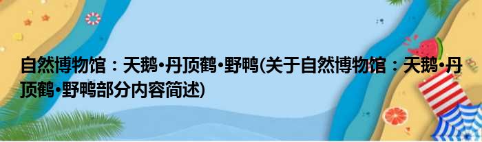 大家好,今天小方来说说一篇关于自然博物馆:天鹅·丹顶鹤·野鸭,关于自然博物馆:天鹅·丹顶鹤·野鸭部分内容简述的文章,那么现在就为大家来简单介绍下,希望对各位小伙伴们有所帮助。