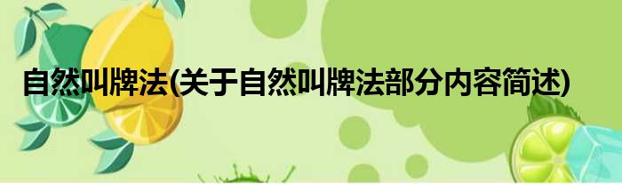 自然叫牌法(关于自然叫牌法部分内容简述)