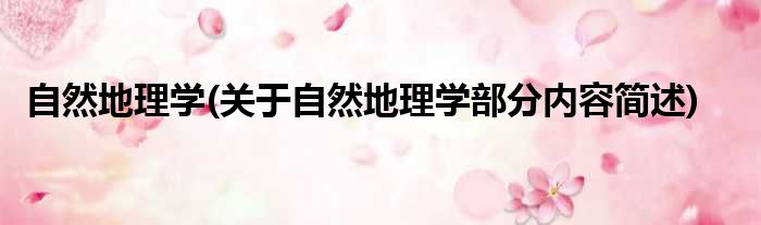 导读 大家好,今天小方来说说一篇关于自然地理学,关于自然地理学部分内容简述的文章,那么现在就为大家来简单介绍下,希望对各位小伙伴们有所帮