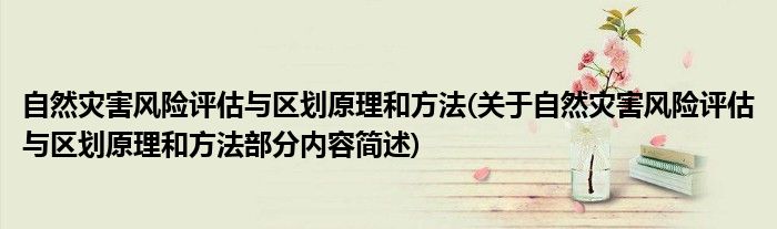 导读 大家好,今天小方来说说一篇关于自然灾害风险评估与区划原理和方法,关于自然灾害风险评估与区划原理和方法部分内容简述的文章,那么现在就