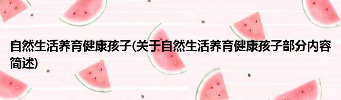 自然生活养育健康孩子(关于自然生活养育健康孩子部分内容简述)