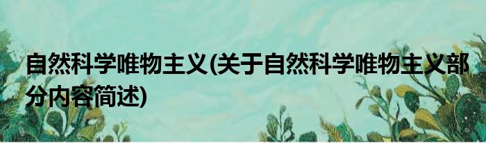 自然科学唯物主义(关于自然科学唯物主义部分内容简述)