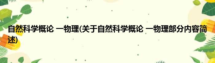 导读 大家好,今天小方来说说一篇关于自然科学概论 一物理,关于自然科学概论 一物理部分内容简述的文章,那么现在就为大家来简单介绍下,希望