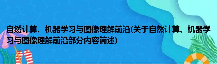 自然计算、机器学习与图像理解前沿(关于自然计算、机器学习与图像理解前沿部分内容简述)