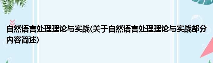导读 大家好,今天小方来说说一篇关于自然语言处理理论与实战,关于自然语言处理理论与实战部分内容简述的文章,那么现在就为大家来简单介绍下,