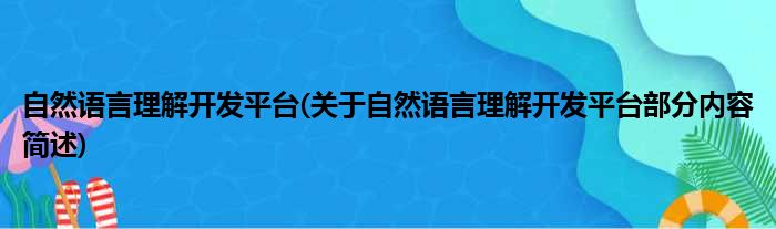 导读 大家好,今天小方来说说一篇关于自然语言理解开发平台,关于自然语言理解开发平台部分内容简述的文章,那么现在就为大家来简单介绍下,希望
