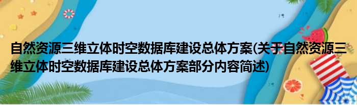 导读 大家好,今天小方来说说一篇关于自然资源三维立体时空数据库建设总体方案,关于自然资源三维立体时空数据库建设总体方案部分内容简述的文章