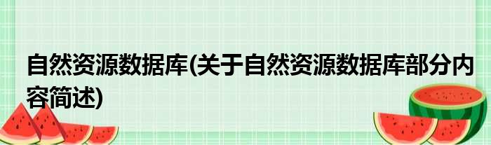 自然资源数据库(关于自然资源数据库部分内容简述)
