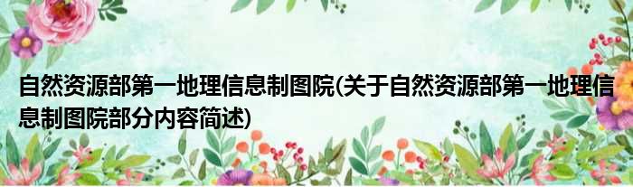自然资源部第一地理信息制图院(关于自然资源部第一地理信息制图院部分内容简述)