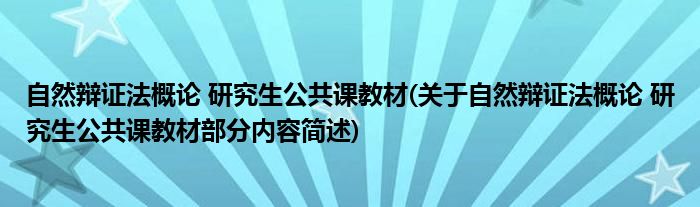 自然辩证法概论 研究生公共课教材(关于自然辩证法概论 研究生公共课教材部分内容简述)