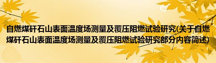 自燃煤矸石山表面温度场测量及覆压阻燃试验研究(关于自燃煤矸石山表面温度场测量及覆压阻燃试验研究部分内容简述)