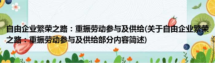 自由企业繁荣之路:重振劳动参与及供给(关于自由企业繁荣之路:重振劳动参与及供给部分内容简述)