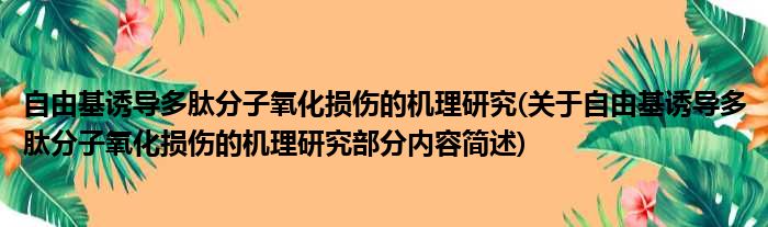 导读 大家好,今天小方来说说一篇关于自由基诱导多肽分子氧化损伤的机理研究,关于自由基诱导多肽分子氧化损伤的机理研究部分内容简述的文章,那