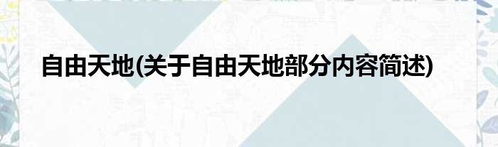 导读 大家好,今天小方来说说一篇关于自由天地,关于自由天地部分内容简述的文章,那么现在就为大家来简单介绍下,希望对各位小伙伴们有所帮助。