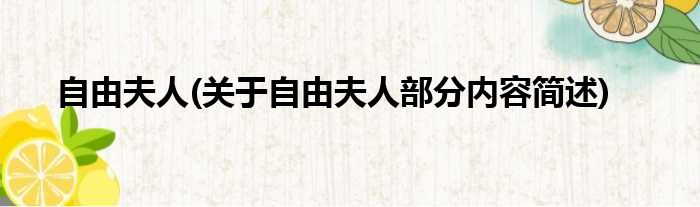 大家好,今天小方来说说一篇关于自由夫人,关于自由夫人部分内容简述的文章,那么现在就为大家来简单介绍下,希望对各位小伙伴们有所帮助。