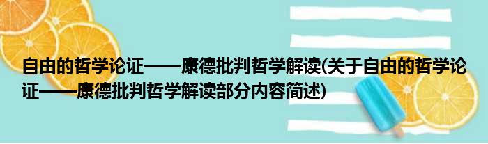 导读 大家好,今天小方来说说一篇关于自由的哲学论证——康德批判哲学解读,关于自由的哲学论证——康德批判哲学解读部分内容简述的文章,那么现