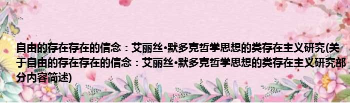 自由的存在存在的信念:艾丽丝·默多克哲学思想的类存在主义研究(关于自由的存在存在的信念:艾丽丝·默多克哲学思想的类存在主义研究部分内容简述)