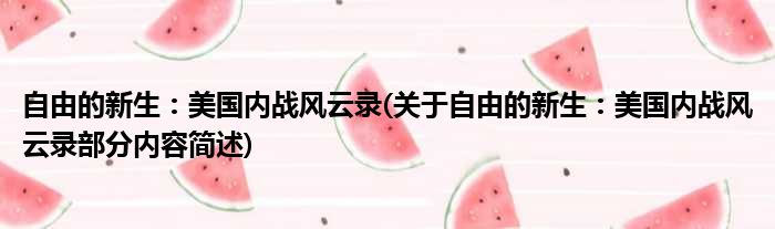 自由的新生:美国内战风云录(关于自由的新生:美国内战风云录部分内容简述)